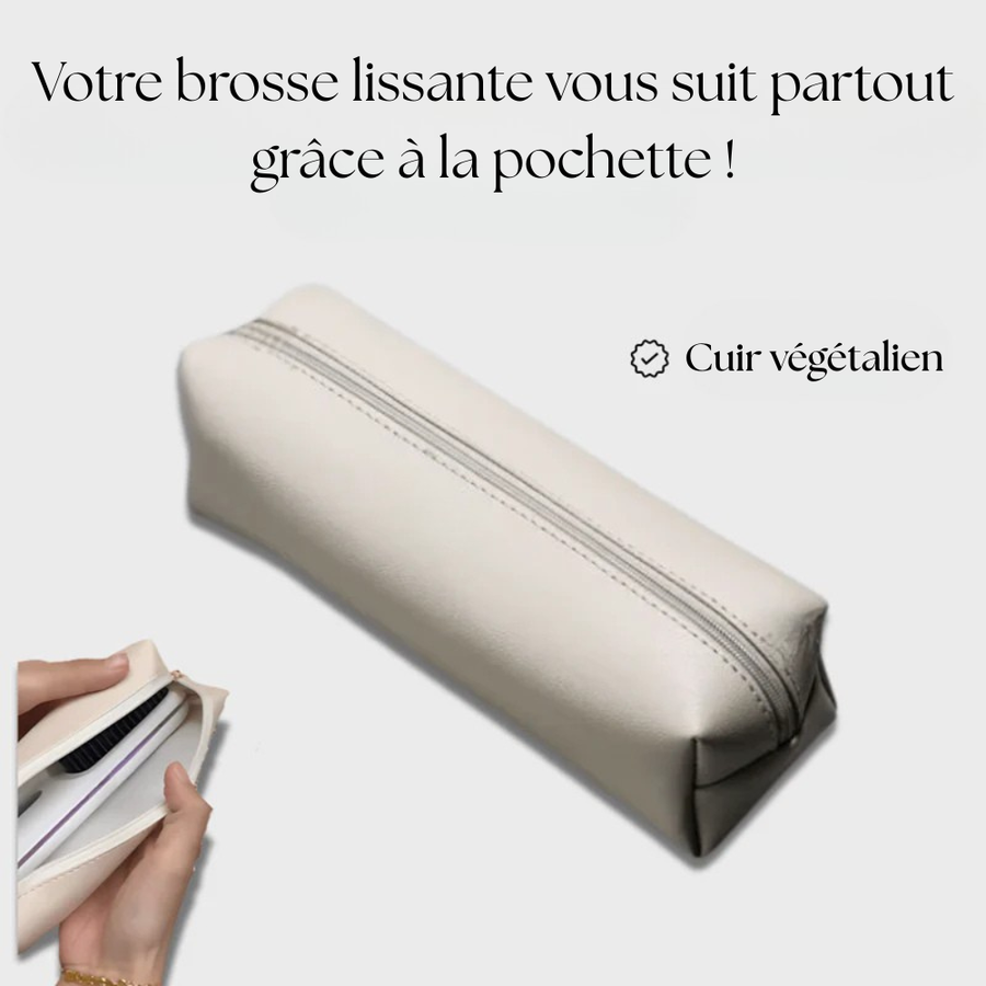 Faite en cuire, cette élégante pochette vous permettra d'emporter votre brosse lissante en toute sécurité.